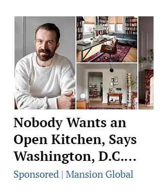 Échale un vistazo a este anuncio nativo de Mansion Global, el website de noticias y catálogos de propiedades de lujo. El anuncio dirige al usuario hacia un artículo sobre el diseño de cocinas, que incluye una entrevista a un arquitecto de renombre de Nueva York. La publicidad no intenta vender una mansión. Lo que pretende es atraer a una audiencia relevante y conducirla a su website, donde podrá suscribirse a newsletters, consultar anuncios de propiedades de lujo y, tal vez, algún día, comprar una mansión.