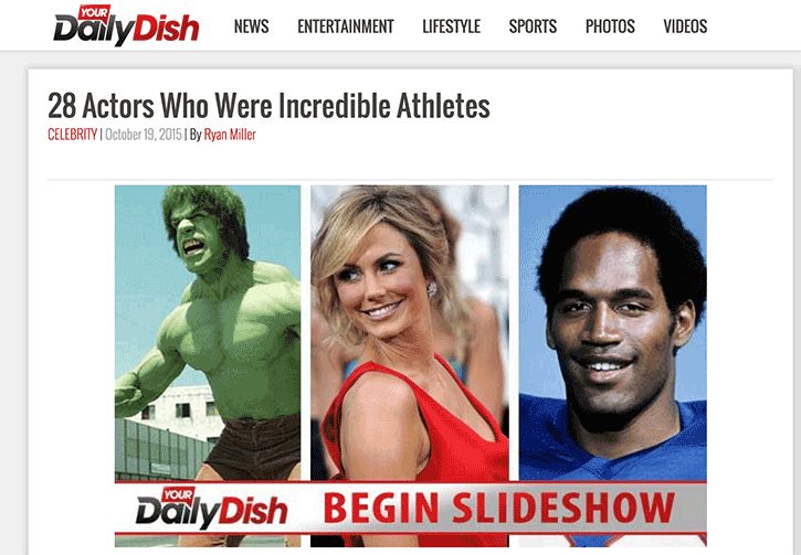 Here’s one great example of an interesting celebrity related article that maintains a positive spin: article on actors who were also great athletes.