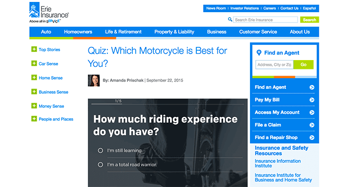 For example, this quiz that tells you what type of motorcycle is right for you based on your riding style and level of experience: