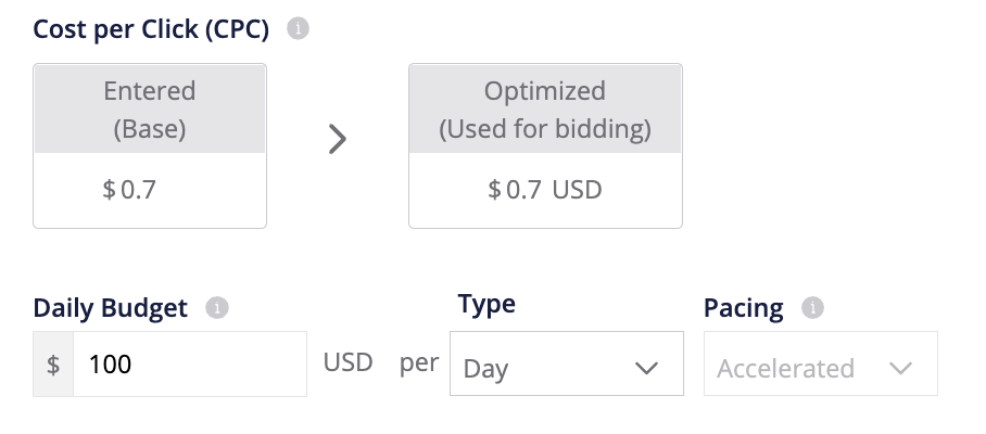 Keep in mind: Outbrain runs on a Cost-Per-Click (CPC) pricing model, which means you will be charged for the number of clicks your campaign receives based on the CPC you set.